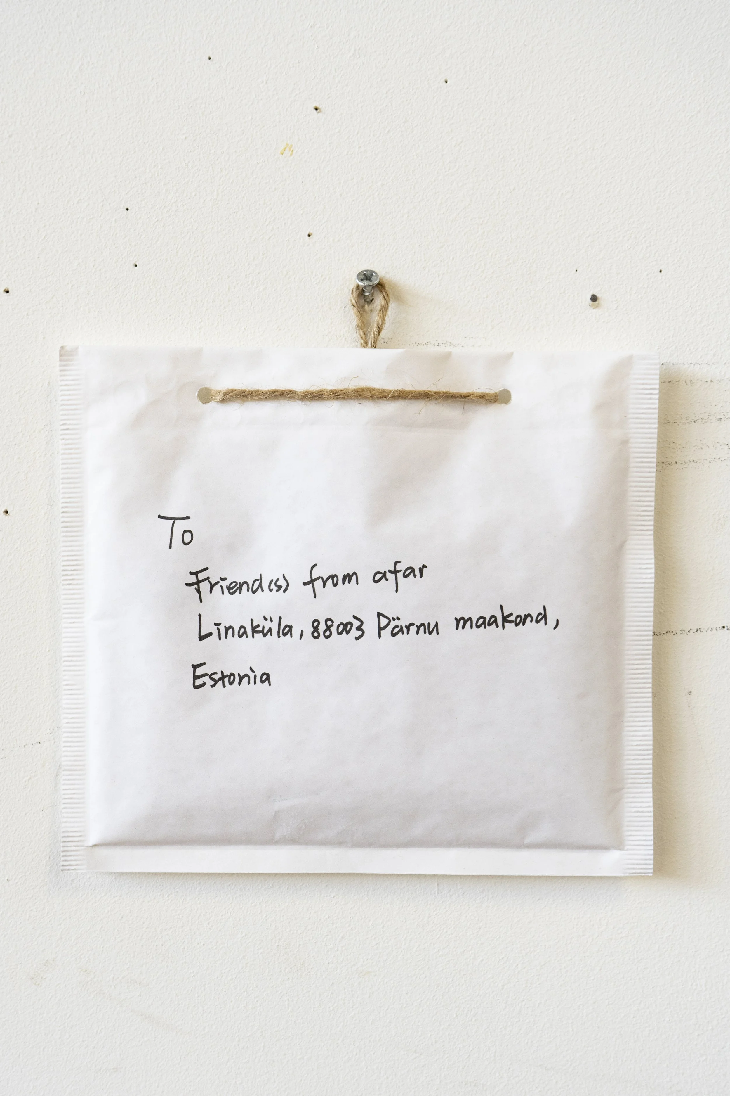 These are six letters delivered by Dong to the Estonian island of Kihnu. They have no addressee, no sealed envelope, no postage stamp—only letters written in three languages, my story, a small gift, and a return address. Anyone is free to open them, read them, exchange stories, and write back.